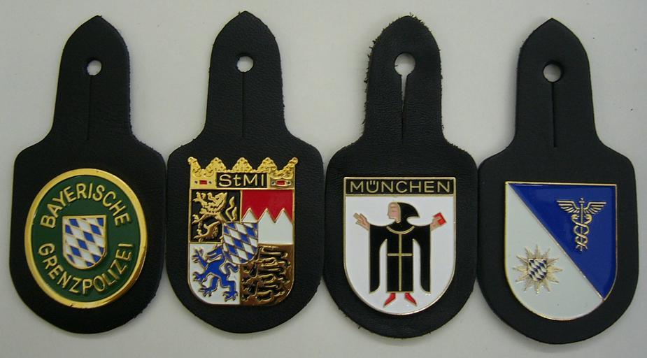 | Keywords: Bayerische Verbandsabzeichen als Brusttaschenanhänger (GrePo, StMI, PP München, PVA).jpg  Insignia of Bavarian Police organisations as worn on uniforms Verbandsabzeichen der Bayerischen Polizei als Brusttaschenanhänger kleine Auswahl ” von links nach rechts Präsidium der Bayerischen Grenzpolizei historisch Bayerisches Staatsministerium des Innern Polizeipräsidium München Polizeiverwaltungsamt historisch own 2005 User Mattes PD-Coa-Germany de Bild Brustabzeichen JPG Coats of arms of Germany Verbandsabzeichen als Brusttaschenanhänger Police of Bavaria Taken with Panasonic Lumix DMC-LC50 Work by Mattes 2005 User Mattes/Contributions/Topics/banners coat of arms flags logos seals and signs User Mattes/Contributions/Topics/ Law enforcement and justice |