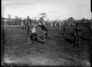 Keywords: blackandwhite monochrome outdoor black and white Members of the 3rd Battalion New Zealand Rifle Brigade receive instruction in 'fighting the blot stick' at a training ground in Henneveux, France. Photograph taken 31 October 1917 by Henry Armytage Sanders. Inscriptions: Inscribed - Photographer's title on negative -bottom left: H312. Quantity: 1 b&w original negative(s). Physical Description: Dry plate glass negative 4.75 x 6.5 inches Bayonet training of New Zealand troops in World War I. Royal New Zealand Returned and Services' Association :New Zealand official negatives, World War 1914-1918. Ref: 1/2-012953-G. Alexander Turnbull Library, Wellington, New Zealand. natlib.govt.nz/records/22716321 Members of the 3rd Battalion New Zealand Rifle Brigade receive instruction in 'fighting the blot stick' at a training ground in Henneveux, France. Photograph taken 31 October 1917 by Henry Armytage Sanders. Inscriptions: Inscribed - Photographer's title on negative -bottom left: H312. Quantity: 1 b&w original negative(s). Physical Description: Dry plate glass negative 4.75 x 6.5 inches Bayonet training of New Zealand troops in World War I. Royal New Zealand Returned and Services' Association :New Zealand official negatives, World War 1914-1918. Ref: 1/2-012953-G. Alexander Turnbull Library, Wellington, New Zealand. natlib.govt.nz/records/22716321 |