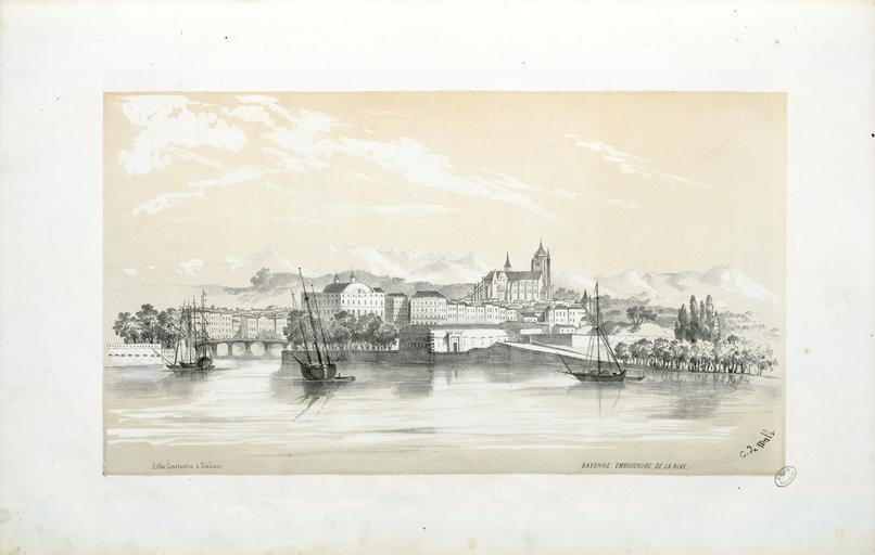 | Keywords: Bayonne, embouchure de la Nive - Fonds Ancely - B315556101 A MALBOS 2 015.jpg Fait partie d'un recueil de 15 planches lithographiées en camaïeu avec titre lithographié Ancely René 1876 - 1966 Possesseur fre public domain domaine public B315556101_A_MALBOS_2_015 jpg image/jpeg 1 f de pl lithogr ; 53 5 cm oblong Clausade Gustave de 1815-1888 Constantin B Éditeur Dupin J Imprimeur http //numerique bibliotheque toulouse fr/collect/general/index/assoc//ark /74899/B315556101_A_MALBOS_2_015 dir/B315556101_A_MALBOS_2_015 jpg Bibliothèque municipale de Toulouse A-MALBOS 2-12 Creator Eugène de Malbos http //catalogues toulouse fr/web2/tramp2 exe/do_keyword_search/log_in setting_key BMT1 servers 1home query p001423 vignette http //numerique bibliotheque toulouse fr/collect/general/index/assoc//ark /74899/B315556101_A_MALBOS_2_015 dir/B315556101_A_MALBOS_2_015_thumb jpeg 1843 Bayonne embouchure de la Nive B315556101_A_MALBOS_2_015 lithography - print Houses in art Adour Bayonne in the Ancely Collection Cathédrale Notre-Dame de Bayonne Bell towers in art Historical images of the Basque Country Nive Wind-powered boats Estuaries Eugène de Malbos Rivers in art Bridges in art |