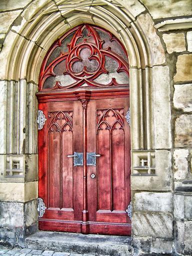 Keywords: bayreuth germany church building door entrance doorway stone architecture wood wooden outside faith religion hdr