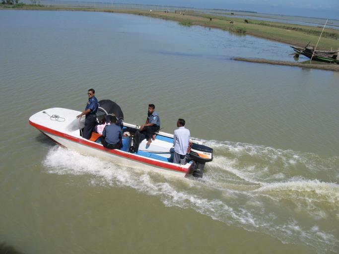 MAKE A MEME View Large Image BD Surma 18.jpg A police patrol speed boat in the haor region Own 2007-10-30 P K Niyogi Sunamganj District Police boats Boats in Bangladesh Surma River