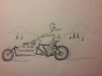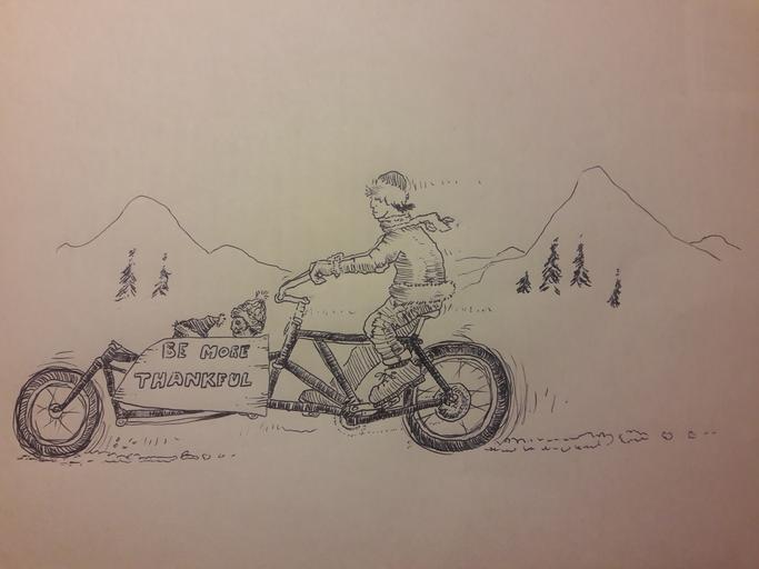 Keywords: bicycle-cartoons bicyclecartoons drawing sketch cartoon text DRAWING 9 It is fashionable for many people to not be thankful or even acknowledge that there are forces in this life and beyond this life that love us all, and want only the best for this, their human family we are all a part of. I believe we should all give a simple thank you for everything that is good in us and in our lives. I for one stand up and say that we 'should' say, Thank You, everyday and particularly at this time of the year, to those that look after us and always allow us to choose our own way whether it helps us or holds us back. I am thankful for family, food, warm water, bicycles, clothing, the internet, and my fellow human beings, things given me all my life whether I deserved them or not. I am grateful for a heavenly family, for my life, and this world, and a chance to live and grow here. Thank you everyone who sees my pictures and favors or comments on them or not. You are all valued and I consider you friends. Happy Holidays and God bless you all, everyone. Ball point pen on copier paper. Photo'd indoors next to a living room lamp. DRAWING 9 It is fashionable for many people to not be thankful or even acknowledge that there are forces in this life and beyond this life that love us all, and want only the best for this, their human family we are all a part of. I believe we should all give a simple thank you for everything that is good in us and in our lives. I for one stand up and say that we 'should' say, Thank You, everyday and particularly at this time of the year, to those that look after us and always allow us to choose our own way whether it helps us or holds us back. I am thankful for family, food, warm water, bicycles, clothing, the internet, and my fellow human beings, things given me all my life whether I deserved them or not. I am grateful for a heavenly family, for my life, and this world, and a chance to live and grow here. Thank you everyone who sees my pictures and favors or comments on them or not. You are all valued and I consider you friends. Happy Holidays and God bless you all, everyone. Ball point pen on copier paper. Photo'd indoors next to a living room lamp. |