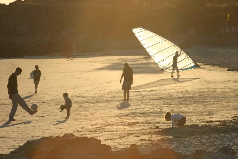 Keywords: beach beach game tourism child family family on the beach summer evening sunset sea ball windsurfing transparency