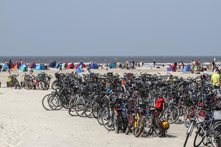 Keywords: beach bicycles sand beach st peter ording coast sea north sea sand summer holiday world natural heritage nordfriesland national park pile construction mecklenburg