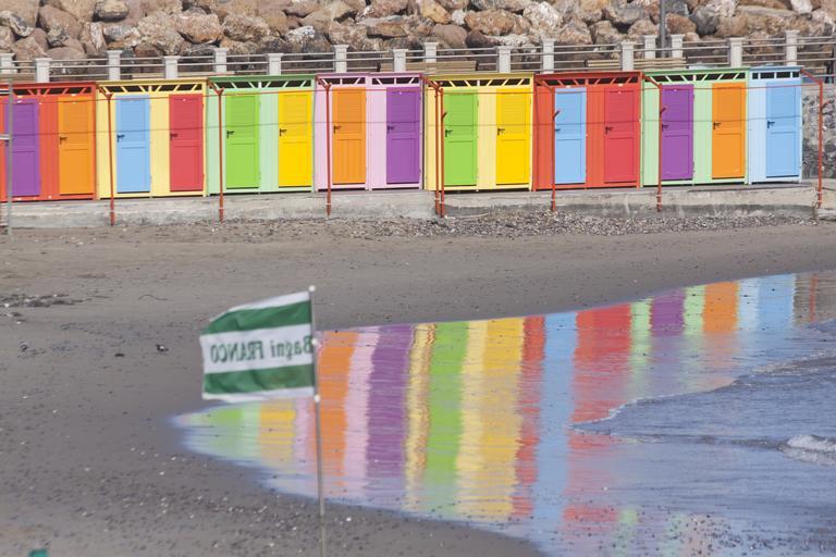 Keywords: beach cabins sea beach colorful water mirroring color holiday recovery lago strandbad