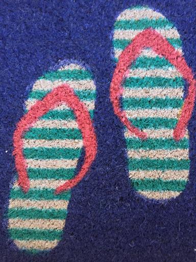 Keywords: beach flip-flop resort summer relax vacation sandal mat texture coarse footwear colorful fun recreation leisure sea pool chilling tropical coast seashore welcome