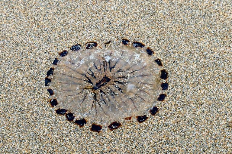 Keywords: beach jellyfish sea sand nature ocean life water jelly beached wildlife marine fish shore creature animal aquatic seashore coast summer organism washed danger brown cnidaria colorful europe seaside invertebrate sealife