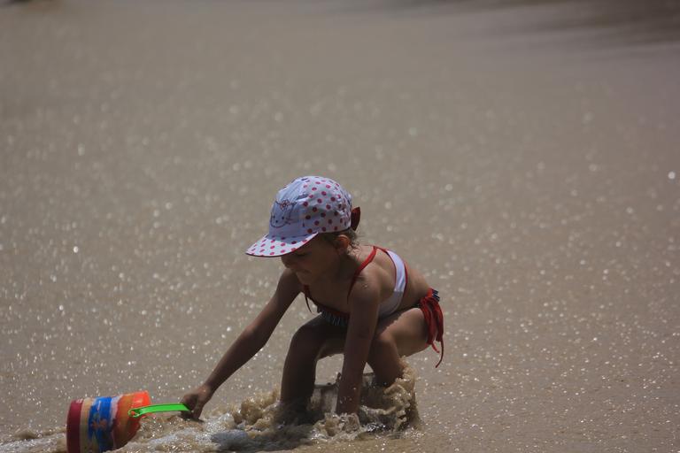 Keywords: beach kids playing children the little girl