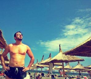 Keywords: beach man body skin tan sunglasses tourist vacations travel sun relaxation people relax sunny summer blue grunge