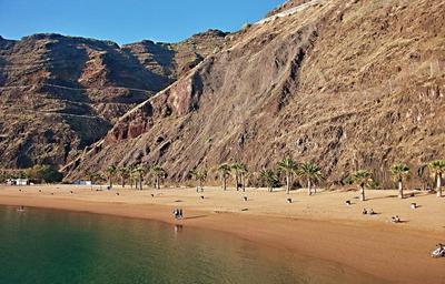 Keywords: beach palm trees tenerife atlantic teresitas santa cruz anagagebirge canary islands island yellow sand beach