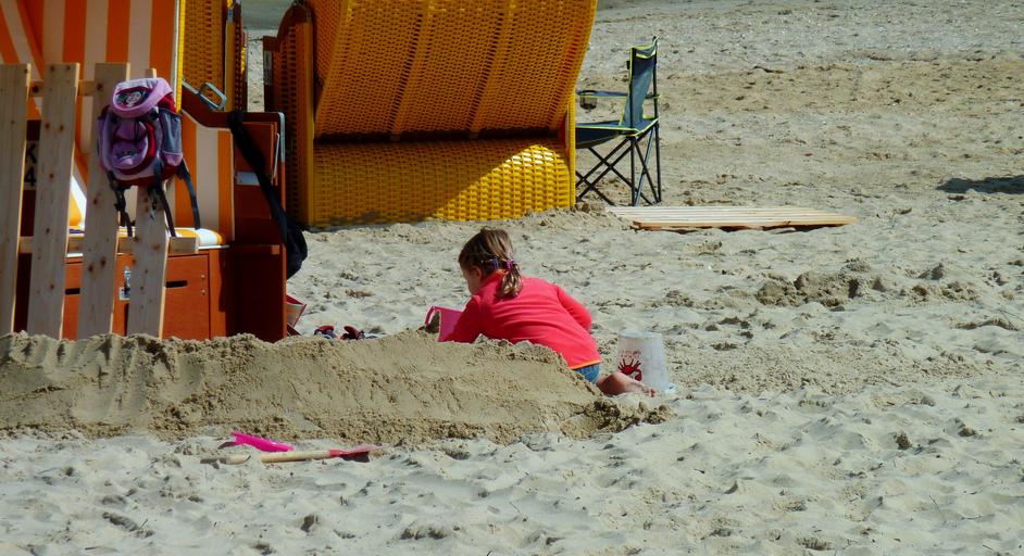 Keywords: beach play beach chair water holiday sandburg child sand movement north sea sea