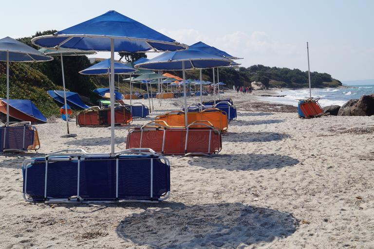 Keywords: beach sand sandy beach sun lounger parasol holidays sea blackbird mediterranean sun greece summer