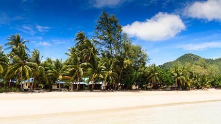 Keywords: beach sand sea clouds trees view palms thailand koh tao