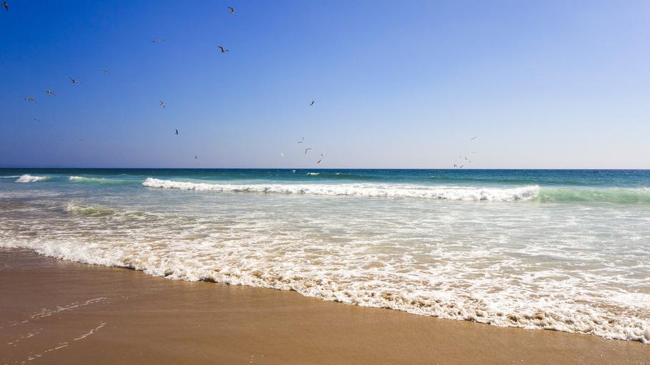 Keywords: beach sea summer holiday by the sea lisbon portugal costa da caparica outlook gulls alone leave