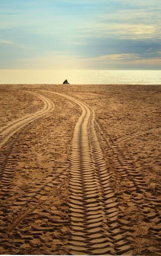 Keywords: beach sunset sweethearts traces tire tracks sea clouds water ocean