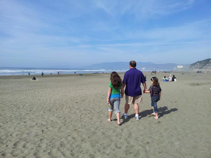 Keywords: beach walk san francisco famity douthers father care together holding hands