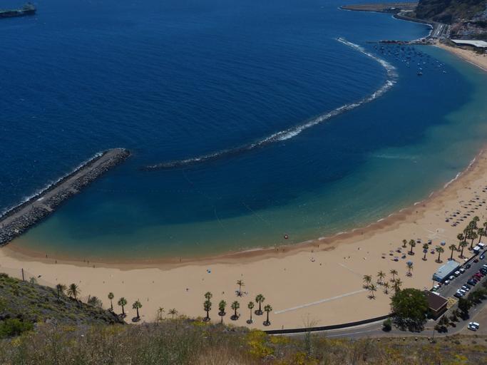Keywords: beach water sea coast sand beach playa las teresitas tenerife ocean breakwater