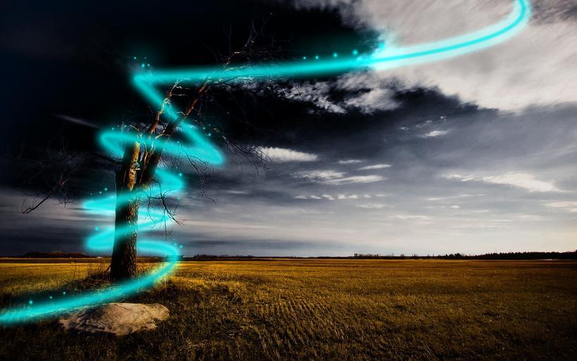 Keywords: beam of light lase alie nature light effect aliens landscape tree field desert