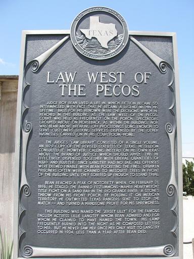 Keywords: BeanSign small.JPG Historical marker at Judge Roy Bean's Jersey Lilly saloon in Langtry Texas Photo taken September 2005 2005-09-01 own assumed Brownings State historical markers in Texas Roy Bean