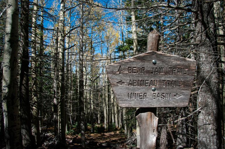 Keywords: abineau-bear jaw loop abineaubearjawloop arizona bear jaw trail bearjawtrail bear jaw trail #26 bearjawtrail26 bear jaw trail no. 26 bearjawtrailno26 coconino national forest coconinonationalforest flagstaff ranger district flagstaffrangerdistrict forest service forestservice kachina peaks wilderness kachinapeakswilderness san francisco mountain sanfranciscomountain san francisco peaks sanfranciscopeaks usfs flagstaff forest hiking mountain outdoors peaks trail wilderness outdoor Abineau Trail is a steep 1,800 foot climb over two miles up the slopes of the San Francisco Peaks through Abineau Canyon. The trail meets the Waterline Trail at the top, which can be followed down to Bear Jaw Trail to return to the trailhead. Each leg of the loop is around two miles long, plus a 0.4 mile connector trail from the trailhead to the loop, making a total loop hike of seven miles. The loop is one of the quintessential autumn hikes in the San Francisco Peaks. Aspens along all three legs of the loop turn gold, and falling leaves carpet the forest floor and decorate the conifers. A storm system passed through the area October 4-7, 2015, raining at lower elevations and snowing on the upper reaches of the San Francisco Peaks. The snow-capped Peaks were a wonderful treat after the few days grey, cloudy, wet weather that had put a damper on outdoor activity. Photo by Deborah Lee Soltesz, October 8, 2015. Credit: U.S. Forest Service, Coconino National Forest. For more information about this trail, see the Abineau-Bear Jaw Loop trail description on the Coconino National Forest website. Abineau Trail is a steep 1,800 foot climb over two miles up the slopes of the San Francisco Peaks through Abineau Canyon. The trail meets the Waterline Trail at the top, which can be followed down to Bear Jaw Trail to return to the trailhead. Each leg of the loop is around two miles long, plus a 0.4 mile connector trail from the trailhead to the loop, making a total loop hike of seven miles. The loop is one of the quintessential autumn hikes in the San Francisco Peaks. Aspens along all three legs of the loop turn gold, and falling leaves carpet the forest floor and decorate the conifers. A storm system passed through the area October 4-7, 2015, raining at lower elevations and snowing on the upper reaches of the San Francisco Peaks. The snow-capped Peaks were a wonderful treat after the few days grey, cloudy, wet weather that had put a damper on outdoor activity. Photo by Deborah Lee Soltesz, October 8, 2015. Credit: U.S. Forest Service, Coconino National Forest. For more information about this trail, see the Abineau-Bear Jaw Loop trail description on the Coconino National Forest website.