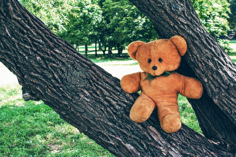 Keywords: bear teddy toy soft childhood tree outdoors park stuffed alone plush cute furry brown gift animal old soviet union style russian retro