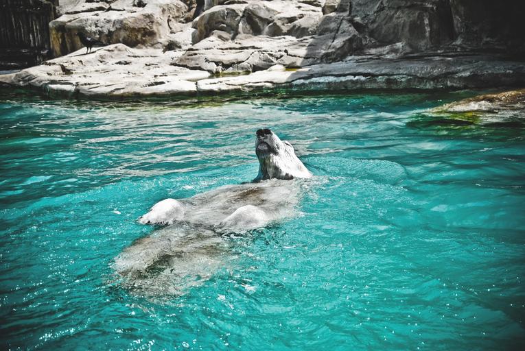 Keywords: bear water blue white swimming animal nature wildlife wild ursus polar pool sea bath carnivora