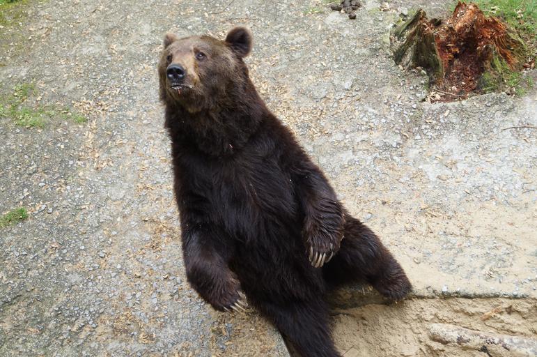 Keywords: bear wild animal predator brown bear animal dangerous mammal zoo fur teddy strong nature park fluffy posing wildlife park snout weather