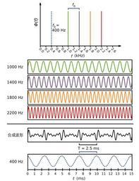 | Keywords: Beat frequency (1000, 1400, 1800, 2200) zh hant.svg en A diagram showing four sinusoids of frequencies 1200 1400 1600 and 1800 hertz green purple orange and red Also shown is the summed signal black and the sinusoid with the same period as the beat frequency f<sub>0</sub> 200 Hz Above is the spectrum of the signals Beat_frequency_ 1000 _1400 _1800 _2200 svg 2010-08-31 14 12 UTC Beat_frequency_ 1000 _1400 _1800 _2200 svg Inductiveload derivative work KeepOpera <span class signature-talk >talk</span> Localization KeepOpera Beat_frequency_ 1000 _1400 _1800 _2200 svg Translation possible Audiology Beat frequencies |