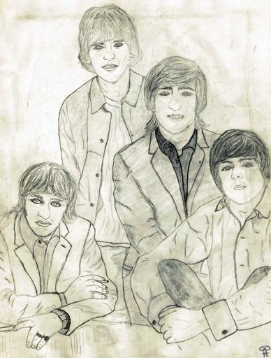 Keywords: beatles drawing pencil drawing hand drawn sketch black and white paint image john paul george ringo
