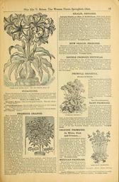 | Keywords: Beautify your homes (15727475764).jpg page iS <br> OLEANDERS <br> These old-fashioned shrubs are becoming immensely popular <br> again I am growing and selling them by the thousands No <br> plant makes more handsome specimens in tubs for the veranda <br> or yard Can be wintered in the cellar I have three colors to <br> offer Price 10 cents eacli <br> Oleander Rosea ” lias double pink flowers The old favor- <br> ite Very sweet <br> Lilian Henderson ” Has double white flowers of the largest <br> size Fragrant like the old double pink Scarce <br> Lutea ”Has double primrose yellow flowers of a lovely shade; <br> also fragrant Scarce <br> OTAHEITE ORANGE <br> This valuable and <br> distinct variety of the <br> Orange family is a <br> dwarf compact grow- <br> er with glossy deep <br> green foliage which <br> has a decided odor of <br> the Orange trees of <br> Florida and is exceed- <br> ingly floriferous pro- <br> ducing a wonderful <br> profusion of pure white <br> flowers of the most de- <br> licious fragrance <br> Identical with the <br> much sought - for <br> blooms of Southern <br> Orange groves Ota- <br> heite fruits immediate- <br> ly afterflowering bear- <br> ing fruitaboutone-half <br> thesize of the ordinary <br> Orange retaining in a <br> marked degree its <br> sweetness This unique <br> Orange cannot be <br> equaled as a Winter- <br> blooming pot plant for – <br> house culture Requires but little sunlight and flowers and <br> fruits when but twelve to fifteen inches high As a pot plant <br> this lovely Dwarf Orange is one of the most novel and beautiiul <br> that can be grown With a couple of plants of it you can have <br> an abundance of the far-famed delicate and fragrant Orange <br> blossoms I have grown a large stock of clean vigorous plants <br> that will bloom and fruit at once of this beautiful orange and <br> commend it to mv friends as a novelty of sterling worth and <br> merit Good plants 10 cents each; large strong plants to <br> bloom and bear profusely at once a5 to ° cents each ac- <br> cording to size <br> OXALIS ORTGIESI <br> Upright Oxalis or Star of Bethlehem ” Few new plants <br> will give better satisfaction than this as it is a perpetual bloomer <br> in every sense of the word It is full of bloom every day in the <br> year when grown in a pot of good soil and with ordinary care <br> It grows as freely as a Geranium in any situation Itisa shrubby <br> plant like a Geranium or Fuchsia without buds in which re- <br> spect it differs from other Oxalis It grows twelve to eighteen <br> inches in height branching freely and loaded at all times with <br> clusters of bright golden star-shaped flowers which do not close <br> at night like other Oxalis Beautiful as the flowers are it is still <br> a splendid plant without them on account of its highly orna- <br> mental foliage The leaves are three lobed dark olive green <br> above and a beautiful shining metallic crimson purpleunder- <br> neath and wine-colored stems This makes a truly novel plant <br> as well as a very beautiul one and is surprising to see what at- <br> tention it will attract 8 cents each <br> NEW OXALIS PRINCESS <br> This new Oxalis comes from San Diego California where it <br> has been introduced from the islands of the Pacific It goes un- <br> der the name of Duchess Pink Beauty etc in various cata- <br> logues It is a bright pink the flowers the size of a quarter <br> of a dollar and makes a perfect carpet of its brightpink flowers <br> The best Oxalis extant 6 cents each <br> DOUBLE FRINGED PETUNIAS <br> The double Petunia is one of the finest bedding plants for <br> massing mixed borders or for vases The brilliancy and va- <br> riety of its colors combined with the duration of its blooming <br> period renders it invaluable for garden decoration My col- <br> lection is unsurpassed for brilliancy ot color and size of bloom <br> It includes all the brightest shades of pink purple rose <br> white etc Name the color you want 15 cents each; two <br> for £5 cents <br> PRIMULA OBCONICA <br> Always in Bloom <br> This is a charming plantfor <br> Winter In fact 1 know of <br> none that is better adapted <br> to home culture than this <br> one It is not susceptible to <br> changes of temperature that <br> most plants are subject to <br> It bears its elegant panicles <br> and sprays of bloom of adel- <br> icate pink and white in the <br> greatest profusion It is <br> certainly elegant 8 cents <br> each <br> New Everblooming <br> BABY PRIMROSE <br> This is the freest blooming <br> plant I know of blooming <br> continuously throughout the <br> entire season Plants in <br> very small pots have from <br> fifteen to twenty sprays of <br> lovely light pink flowers on <br> stems ten to twelve inches <br> high at one time and plants in four-inch pots often have from <br> twenty-five to fifty at one time lasting in bloom fully four weeks <br> without fading and continually sending new sprays all over the <br> plant making it one of the most desirable plants for the house <br> ever introduced It 'is a very rapid grower and the easiest <br> grown of all the Primrose family Very desirable 8 cents <br> each <br> CHINESE PRIMROSE <br> In White Pink <br> and Crimson <br> Few house plants afford better <br> satisfaction than this It re- <br> quires to be kept cool a north <br> window suiting it best Care <br> should be taken in watering it <br> that no water gets on the buds <br> as it causes them to decay In <br> the Summer it can be turned <br> out into a shady border The <br> plants I offer are fine and the <br> colors are sure to please I have <br> them in white pink and crim- <br> son iO cents each <br> MEXICAN PRIMROSE <br> This plant is strictly a perpet- <br> ual bloomer In flower at all <br> seasons of the year agood speci- <br> men showing always from ten <br> to thirty large saucer-shaped blossoms about three inches <br> across <br> Apple Blossom ” A splendid variety with handsome flowers 