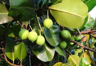 Keywords: beauty leaf alexandrian laurel fruit nut flora sultan champa surangi nag champa punnaga calophyllum inophyllum clusiaceae gokarn karnataka india