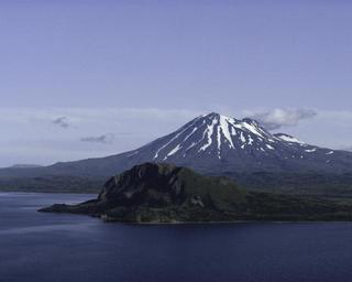 | Keywords: Becharof National Wildlife Refuge,Alaska.jpg en The Peulik volcano background and Becharof Lake foreground in the Becharof National Wildlife Refuge what lays in Alaska 1956 R J Wilk U S Fish and Wildlife Service US-FWS from US-FWS Becharof NWR King Salmon Alaska Tundra mountains and still-smoldering volcanoes part of the Pacific Ring of Fire fill the senses as far as the eye can see at Becharof National Wildlife Refuge Mt Peulik volcano seen here is the most prominent feature of this refuge Gas rocks which constantly seep volcanic gasses are found around the south shore of Becharof Lake the second largest lake in Alaska Becharof Refuge is home to thousands of huge Alaska brown bears some standing as high as 9 feet tall and weighing as much as 1 000 pounds--one of the world's largest concentrations of this magnificent animal Caribou moose wolves river otters and wolverines are among the other mammals found here Anglers will find Arctic char northern pike grayling rainbow trout and five species of salmon--red pink king coho and dog Birds inhabiting this refuge include black oystercatchers peregrine falcons tufted and horned puffins gyrfalcons redpolls yellow warblers willow and rock ptarmigan and hundreds of bald eagles The offshore waters teem with sea lions seals sea otters gray whales Travel to this refuge is difficult requiring chartered air travel rugged hiking/camping gear extra provisions and warm water-repellent not down clothing PD-USGov-FWS Becharof Lake Ugashik-Peulik Becharof National Wildlife Refuge |