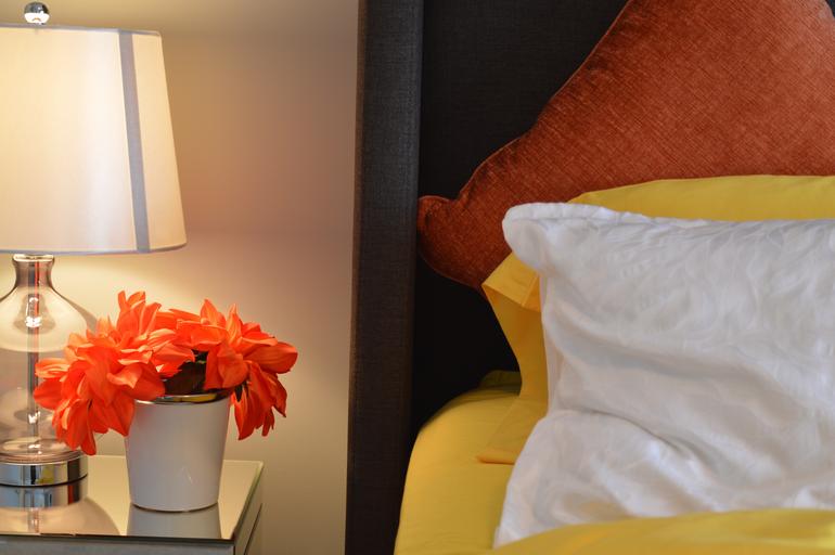 Keywords: bed lamp bedside pillows flower bedroom house home cushions bedspread headboard accommodation room interior table furniture bedtime comfort comfortable bedding linens night table decor