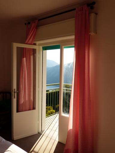 Keywords: bedroom balcony door outlook interior apartment holiday window balcony door curtain light hell incidence of light