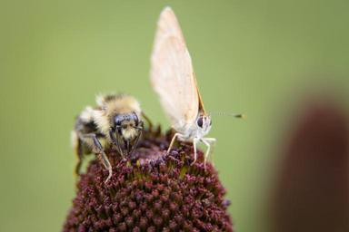 Keywords: animal insect Bee and butterfly on western coneflower; Neal Herbert; August 2014; Catalog #19693d; Original #4090 Bee and butterfly on western coneflower; Neal Herbert; August 2014; Catalog #19693d; Original #4090