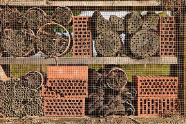 Keywords: bee house wild bees garden closeups background nature environmental protection insect house