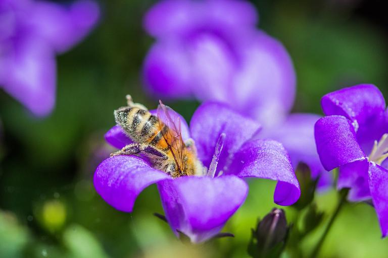 Keywords: bee insect close macro flower nectar honey plant purple blossom bloom nature