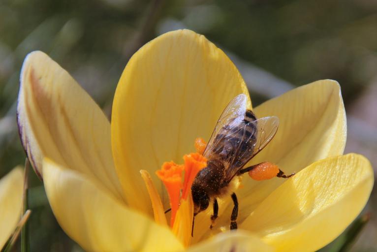 Keywords: bee nectar fly foraging harbinger of spring insect crocus frühlingsanfang bloom collect pollen blossom bloom nature