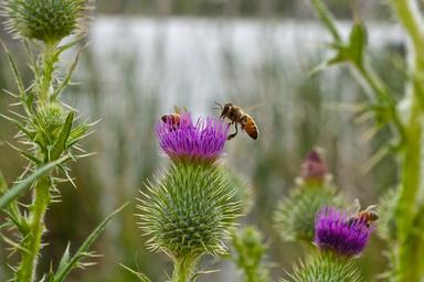 Keywords: bee thistle macro flower prickly scotch scottish weed purple blossom nettle plant flora floral hairy petal scotland head nature botanical sharp natural environment botany garden bloom