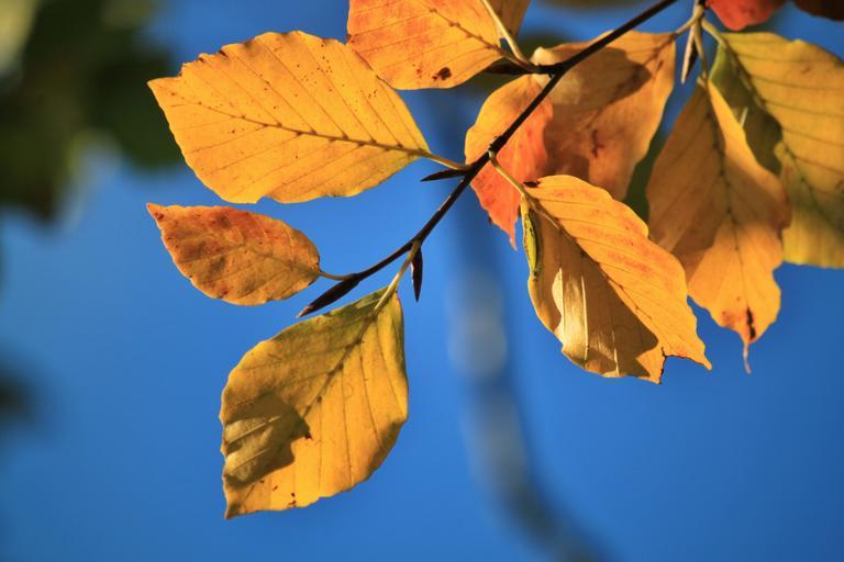 Keywords: beech beech leaves fall foliage autumn colours colorful leaves autumn leaf colorful leaves color golden autumn leaves in the autumn flora yellow orange sunny branch plant nature discolored macro macro photography