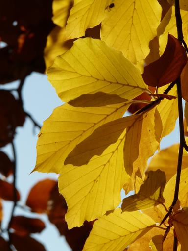 Keywords: beech fagus sylvatica fagus deciduous tree golden autumn golden october autumn october forest leaves golden bright sun back light colorful color tree road autumn forest fall foliage