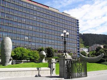 Keywords: Beehive Government Building Ground.JPG 'Sculpture Square' the lawn behind the Beehive with Bowen State Building in the background Museum Street Wellington New Zealand Former site of Broadcasting House demolished 1997 Own 2007-11-03 User Donaldytong Government buildings in Wellington Sculptures in Wellington Taken with Olympus C-750UZ