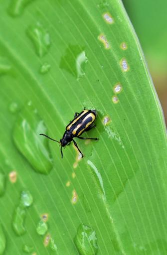| Keywords: beetle flea beetle alligatorweed flea beetle bug insect alligatorweed tiny small creature flying insect winged insect antennae black and gold black and yellow close up contrast nature leaf green introduced species entomology biology arthropod agasicles hygrophila |