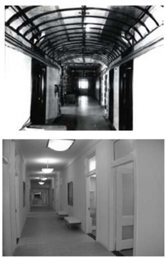 Keywords: Before&After-GSA building's ductwork.jpg en Before GSA Building corridor ductwork installation in progress 1935 After After Relocating corridor ductwork to adjoining office spaces enabled GSA to restore previously concealed cove cornices and door transoms that now flood the corridor with welcomed daylight 2012-04-17 http //www gsa gov/graphics/pbs/HVAC pdf GSA PD-USGov Uploaded with UploadWizard GSA technical preservation guidelines |