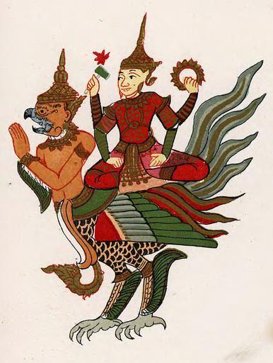 Keywords: Beikthano (Vishnu) Nat.jpg Vishnu Beikthano in Burmese representation on his mount vehicle the garuda galone The Thirty Seven Nats from http //sea lib niu edu/images/mimage php id 246 pagenum 55 Southeast Asia Digital Library 1906 Temple Richard Carnac Sir PD-old Art of Myanmar Paintings of Vishnu Nats spirit Garuda in Burma 1906 paintings Vishnu rides Garuda |