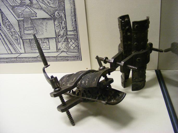 Keywords: Beinschrauben - Mittelalterliches Kriminalmuseum Rothenburg ob der Tauber.JPG Španělská bota Spanische Stiefeln oder Beinschrauben Exponat im Mittelalterlichen Kriminalmuseum Rothenburg ob der Tauber Spanish boot own 2009-11-15 User Mattes Collections of the Kriminalmuseum Rothenburg ob der Tauber Torture instruments Metal objects Taken with Fujifilm FinePix S5700 Work by Mattes 2009 User Mattes/Contributions/Topics/Germany/Rothenburg ob der Tauber User Mattes/Contributions/Topics/ Law enforcement and justice |
