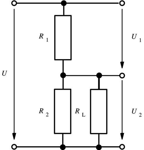 Keywords: Belasteter Spannungsteiler.svg en voltage divider with load de belasteter Spannungsteiler own Backsideficker Teaching illustrations of electronics