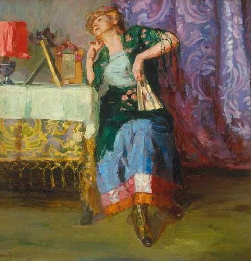 Keywords: Béli Vörös In the Boudoir.jpg Artwork Creator Ernő Béli Vörös Oil on canvas Size cm 71 71 Private collection object history exhibition history credit line bottom left Béli Vörös Ernő accession number http //www viragjuditgaleria hu/ Virág Judit Galéria http //viragjuditgaleria hu/en/item/2827/ Info http //viragjuditgaleria hu/pics/paintings/beli_voros_erno-budoarban-16_184 jpg Pic PD-old-70 Ernő Béli Vörös Paintings of sitting women looking in mirrors |