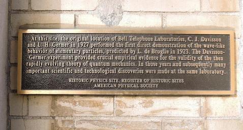Keywords: Bell Labs APS plaque west side of Westbeth door jeh edited.jpg en Looking south at plaque from American Physics Society west of door 2013-11-02 10 00 59 own Jim henderson 40 44 13 0 N 74 0 30 8 W heading S cc-zero Uploaded with UploadWizard Electron diffraction History of physics Plaques in New York City Westbeth Complex Bethune Street Manhattan |