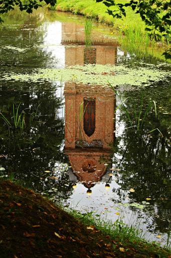 Keywords: bell tower building ludwigslust-parchim mirroring water steeple tower historically castle park